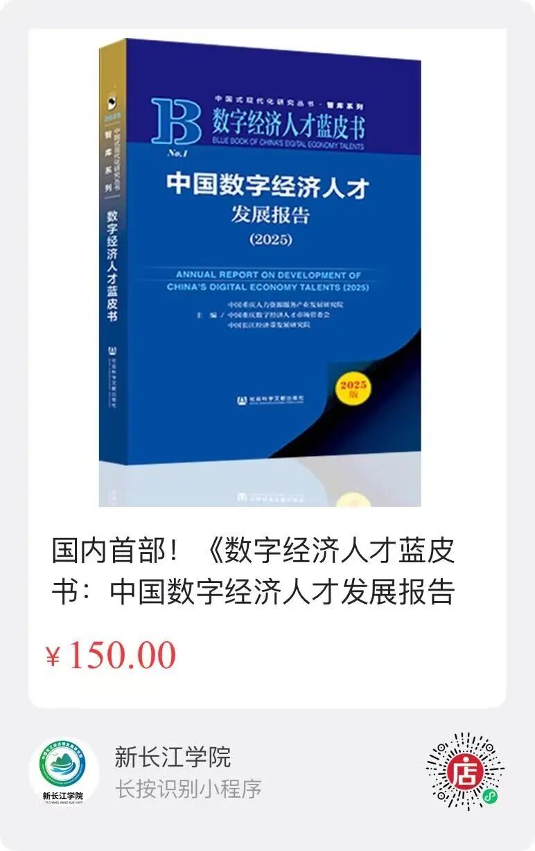 我国首部系统聚焦数字经济人才蓝皮书——《数字经济人才蓝皮书:中国数字经济人才发展报告(2025)》由社会科学文献出版社出版,全国各大书店全面上架。该蓝皮书由中国重庆人力资源服务产业发展研究院、中国重庆数字经济人才市场管委会、中国长江经济带发展研究院联合编撰,汇聚政、产、学、研多方智慧,旨在为国家战略、产业转型与人才培养提供权威决策参考。